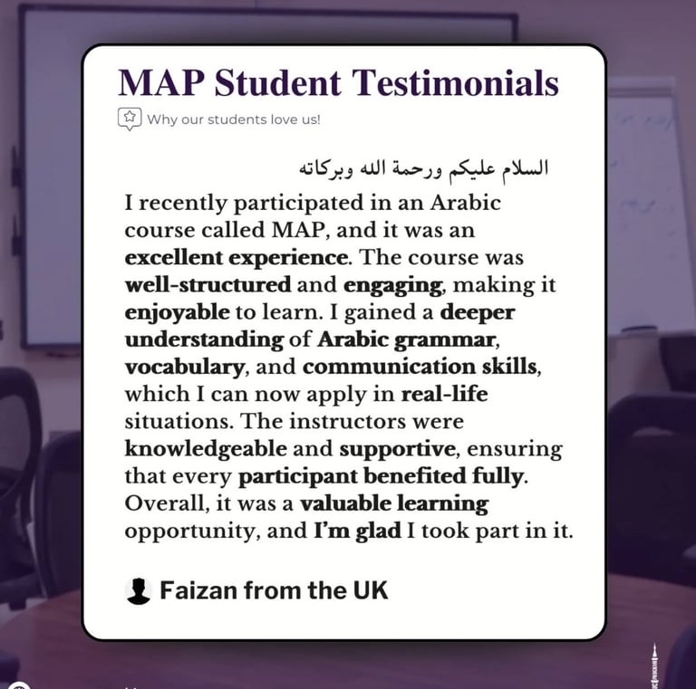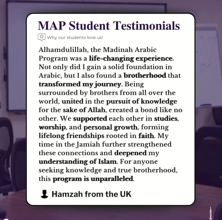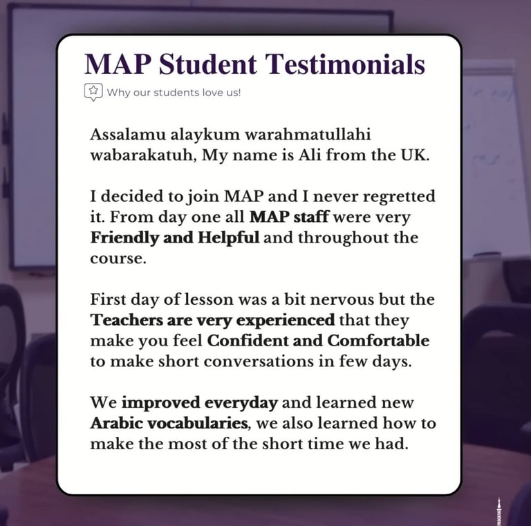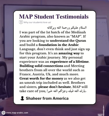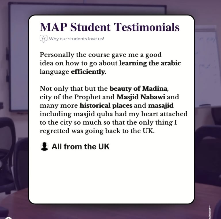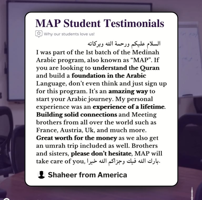 Discover what our satisfied customers say about their experiences with our exceptional services and products through Madinah Arabic Programme.